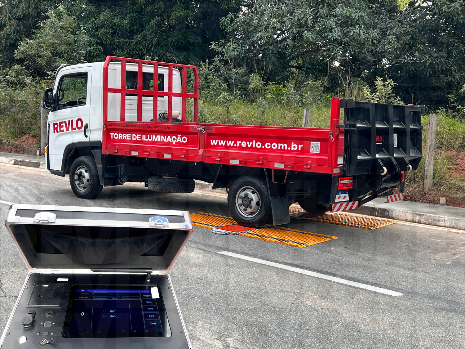 A balança da Revlo pode pesar até 200 toneladas. Isso atende bem aos veículos pesados.