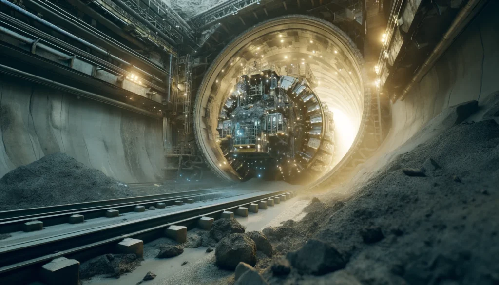 A fase de escavação é o coração da construção do túnel. Usando a tecnologia escolhida baseada nas condições do terreno, esta etapa deve ser realizada com precisão. Por exemplo, o uso de uma TBM permite uma escavação eficiente e segura, especialmente em terrenos difíceis. Durante a escavação, é crucial monitorar continuamente o ambiente para garantir que a integridade estrutural do túnel seja mantida.