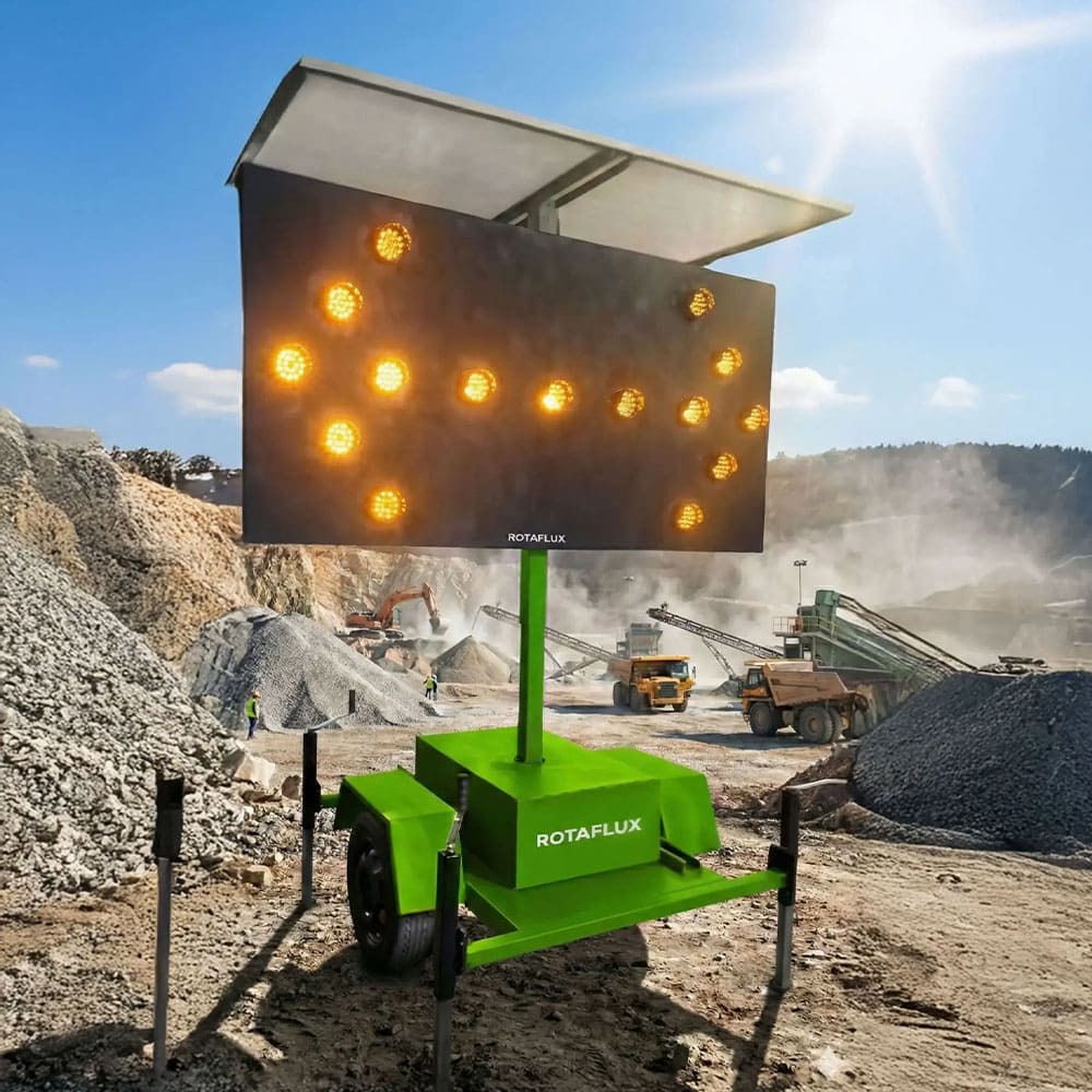 O Painel de Seta Indicativa Móvel (PSI) da Revlo é um dispositivo auxiliar direcional usado para orientar o tráfego e indicar rotas alternativas em eventos, obras e situações de emergência.