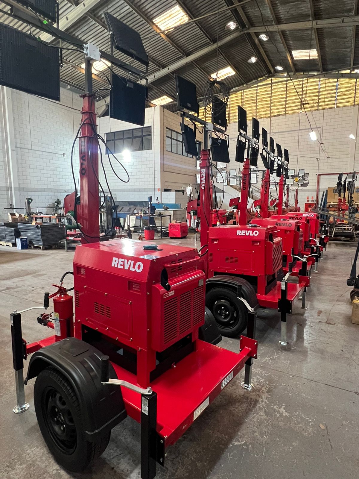 Os equipamentos Revlo usam geradores de 4.5 kva com partida elétrica. Isso garante potência sem desperdício de energia. Essa configuração é ideal para canteiros de obras e eventos.