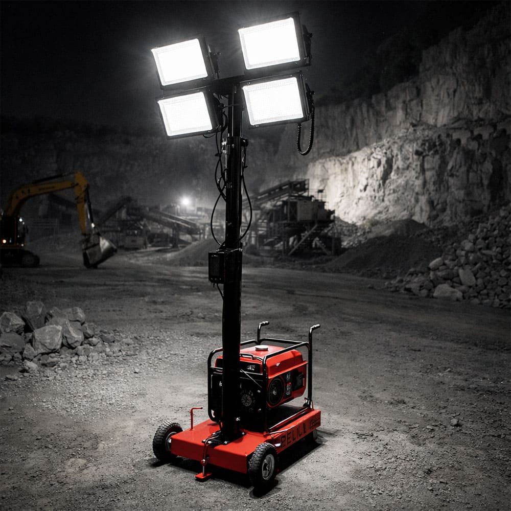 Uma torre de iluminação robusta que é capaz de fornecer até 4.800 watts de potência.