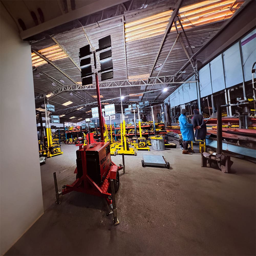 Uma torre de iluminação robusta que é capaz de fornecer até 4.800 watts de potência.