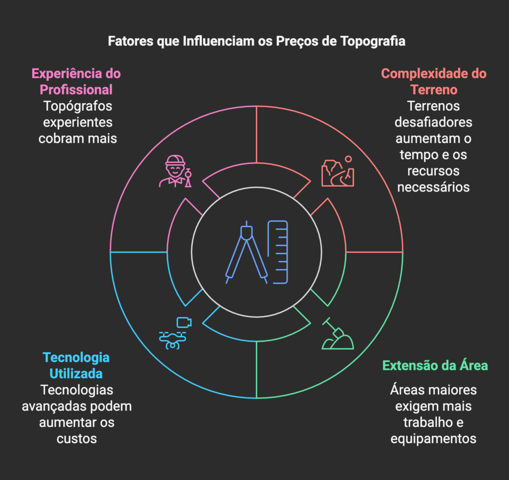 Os preços dos serviços de topografia variam conforme diversos fatores, incluindo: