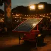Adicionamos torre de iluminação led alimentadas por energia solar em locais sensíveis. Estes modelos não poluem e não fazem barulho. A energia solar garantiu autonomia sem combustíveis fósseis.